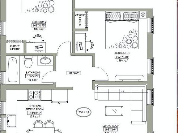 - Total interior livable area: 1,200 sqft