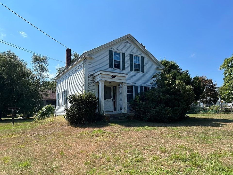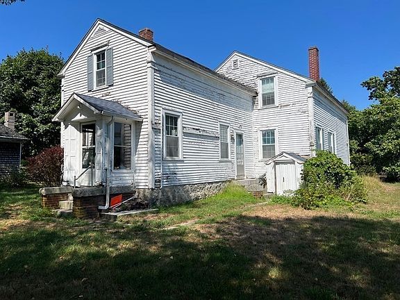The Thomas Bryant House. Owned by the same family since 1903, this 1825 Greek Revival farmhouse is waiting for a new owner to bring it back to its former glory. The home offers 4 bedrooms, one bath, dining, living, family, and bonus rooms. In other words, there’s a lot of space to work with here. Also included are a detached 2-car garage/workshop and a large 19th century barn with a 20th century silo. The barn will need major repairs or to be razed. The house has a 2-year-old roof and asbestos was professionally removed from the barn in 2021. Although in need of some cosmetic renovation, the home has great “bones,” including beautiful wide-plank pine floors, thick hewn beams, and giant granite pillars in the basement. Although the home is connected to town water and sewer, there is a known well behind the barn. This property has INCREDIBLE potential! Note: Right now, we are only showing the property on weekends. CASH buyers only please.