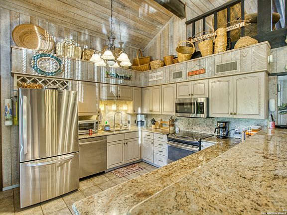 Frio Riverfront with Treehouse overlooking river!!! This one of a kind property is located on the Frio River near Leakey, Texas is truly a hidden gem. Featuring 2.3 acres with a 4 bedroom 2 bathroom main house, 1 bedroom 1 bathroom guest cottage and TREE HOUSE in a majestic cypress tree towering above the Frio River! Currently used as a vacation rental with lots of rental history and comes turn-key ready to go and can sleep up to 18 people!! The spacious main house features wood flooring, granite countertops, 3 bedrooms downstairs, 1 large loft bedroom upstairs. Guest house features the most unique antique wall features taken from the Embassy in France and gorgeous stained glass, bedroom, bathroom and kitchenette. Exterior features include multiple sitting/patio areas/decks over looking the river frontage, tree house, horseshoes, outdoor shower, firepits, multiple eating areas. Too many features to describe, come see for yourself!!
