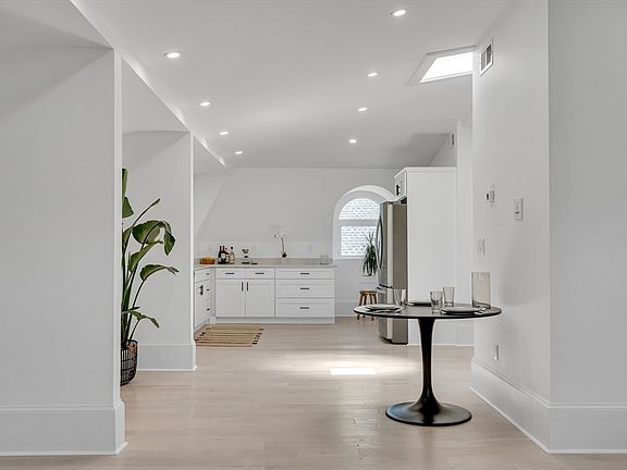 ** This Penthouse level 2 Bed 2, Bath unit features tall ceilings, unique circular windows on 3 exposures that flood with sunlight and skylights! This Complete Gut renovation features Solid Hardwood flooring throughout, an open concept chefs kitchen with Quartz countertop with gas cooking & a perfect layout for entertaining. Carrera bath countertops with tiled showers & glass enclosures create a spa like feel. Spacious laundry room for extra storage. 1,415 Sq Ft + 457 Sq Ft of basement space. Top floor unit with skylights and 1 outdoor parking spot. Minimal maintenance make this a great turn key home or investment opportunity. ASK ABOUT PREFFERED INTEREST RATES AS LOW AS 5.25%