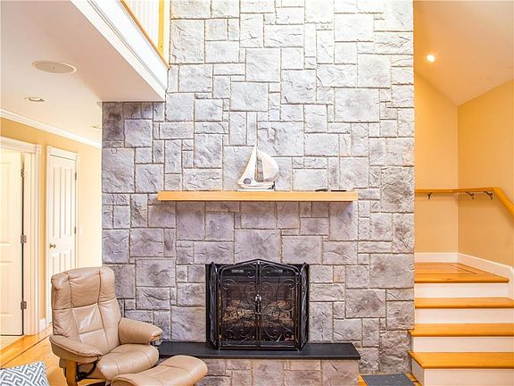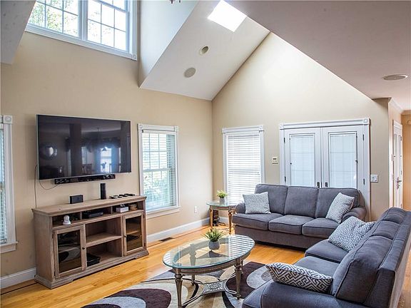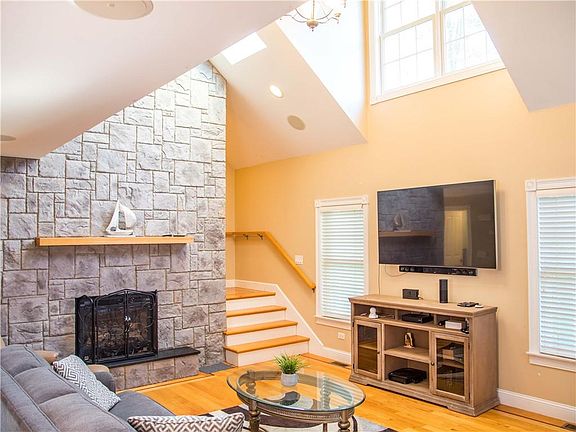 Jamestown Village – Beautiful property tucked away in the Island’s highly desired Village area. Sited near restaurants, shops, marina, and beaches. The first level features an eat-in kitchen and dining area with granite countertops, stainless steel appliances, and expansive barstool seating. The light-filled living room boasts cathedral ceilings with a gas fireplace and provides access to the rear deck. There is also a half bath and an office area or potential fourth bedroom. The second level has a large master bedroom suite with abundant closet storage and a private deck offering distant views of Dutch Harbor, two additional bedrooms, and a second full bath. The lower level provides significant space for guests with a full bath, walkout access, and a laundry room. Other highlights include gleaming hardwoods, a one-car attached garage, central A/C, a home alarm system, and an audio system. Wonderful opportunity to experience all that Jamestown has to offer!