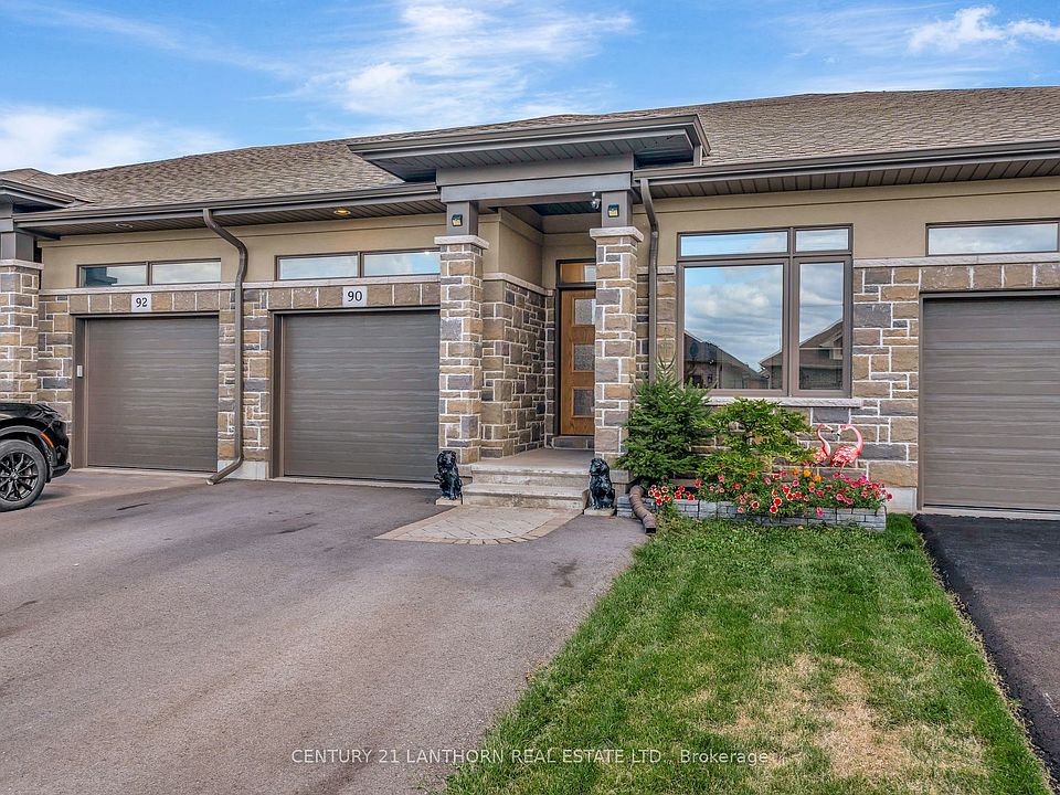 Welcome to 90 Covington. This townhome bungalow offers a very desirable layout. Relax in the spacious great room and on the attached 12'x12' deck. The convenient U shaped kitchen features Granite counter tops, an extended eating bar, gas stove and a 4'x4' corner pantry! The large master bedroom features a walk in closet and 3 piece ensuite while the second bedroom enjoys easy access to the main 4 piece bathroom. The full, unfinished basement has room for an additional 2 bedrooms, a family room and has a rough in for a bathroom. This home comes complete with a single car garage with inside entry, paved driveway, and central air conditioning. The desirable Settlers Ridge is close to many amenities such as the Quinte Mall, Quinte Sports and Wellness Centre, Walmart and the 401.
