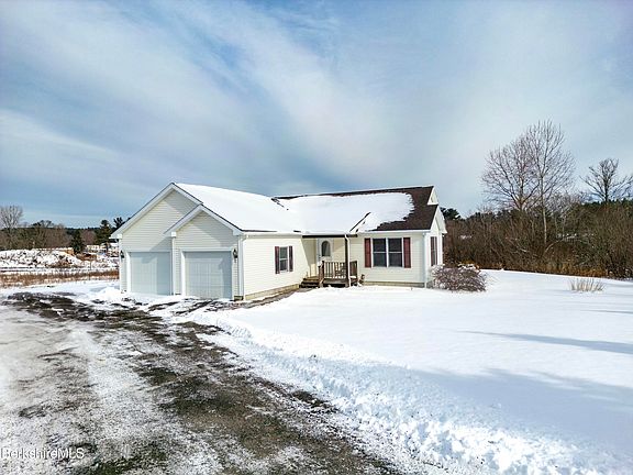 This ranch-style home in an ideal location offers one level living, with 3 bedrooms and 2 full bathrooms. Situated minutes away from town, stores, skiing, and year-round outdoor activities, it provides a desirable setting overlooking farmland with ample privacy. The attached 2-car garage ensures comfortable day-to-day convenience, while wood floors and abundant natural light create a warm and inviting atmosphere throughout. Open concept kitchen-dining-living, 2 bedrooms that share a hallway bath, a larger primary with ensuite bath and a full unfinished basement for additional space. This well-maintained home is ready for its new owners. Located just 7 minutes from downtown Great Barrington, 15 minutes from Butternut, and 8 minutes from Catamount, this gem offers the perfect setting for those seeking a peaceful & accessible property!