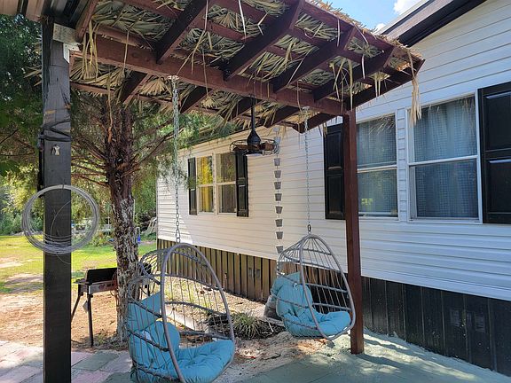 Peaceful country living awaits you at this well maintained and customized manufactured home. Drive in the driveway, past the tree house and park in the carport. Sit outside under the covered swings, and enjoy the fan breeze while sipping on your favorite beverage. Step into your home with 3 beds and 2 baths with updated floors. All bedrooms have a walk in closet. Kitchen has been customized with tile backsplash and upgraded faucets and sink. New refrigerator and stove. All appliances stay. Head into the primary suite. Lighting has been upgraded. Primary closet has custom lighting, and hanging space. Very luxurious. Primary bath has new fixtures, and custom lighting. Mirror lighting is motion sensitive. Yard has plenty of potential for gardens and animals. Come See !