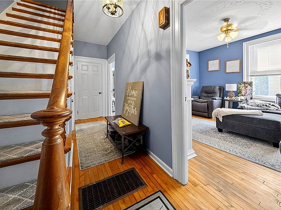 This inviting home features three bedrooms and two full bathrooms, offering over 1,300 square feet of comfortable living space. The first floor includes a conveniently located bedroom and a recently updated full bath, perfect for accessibility and ease of living. Step inside to find an oversized living room, a formal dining room ideal for intimate gatherings, and a beautifully detailed staircase that adds character as you enter through the front door. Situated in a central location, this home provides quick access to major amenities — including grocery stores, restaurants, medical offices, and more — and is just five minutes from the heart of Oswego. Recent updates add even more value and peace of mind: New hot water heater (2024), New furnace heat exchanger (2024), Updated lighting throughout, fully renovated downstairs bathroom with new flooring, vanity, sink, toilet, and plumbing, and Fresh interior paint (2023). Whether you’re looking for a starter home or simply looking for a move-in-ready home with charm and convenience, 90 E Cayuga Street is a must-see. Offers due 10/28/2025 at 7pm.