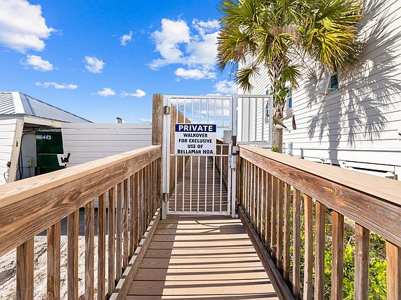 Comprehensively renovated and expanded home in BellaMar close to neighborhood private beach access. This fully furnished coastal residence will exceed expectations, inside and outside, with an expansive, heated pool and new roof added in March 2024. Occupying a generous corner lot, this impressive home has a lengthy driveway and a two-car garage. The pillared entrance porch opens into a huge contemporary living space that will take your breath away. New flooring throughout the home provides a backdrop for the neutral decor and modern furnishings arranged in this spacious home. There's a dedicated office space on one side and a built-in wet bar with its own wine cooler and ice maker. It's perfect for serving drinks to guests before heading into the separate formal dining area. The well-planned kitchen is an epicurean dream with full-height cabinets, sleek stainless appliances and sweeping quartzite topped counter on the kitchen island/breakfast bar. It's equipped with a six-top gas range, double oven, Samsung digital refrigerator, built-in microwave and more. A wall of fully retracting windows extends the bright living area out into the newly landscaped yard, delivering a seamless indoor/outdoor lifestyle. Take a dip in the jetted heated 15 x 30 swimming pool, which was added 2016 and recently been converted to saltwater. Other upgrades include a HomeWater filtration system, new UV air filtration and dehumidifier system, a backup home generator and new HVAC in 2022. Situated in the beautiful gated rental-restricted community of Bella Mar, this luxury beach home is close to the gate just a short hop from Gulf Place shopping and dining. The neighborhood beach access is nearby for enjoying morning walks with occasional sightings of dolphins, pelicans and wading birds. For discerning buyers looking for a new home with that little bit of extra panache, this could be a perfect fit.