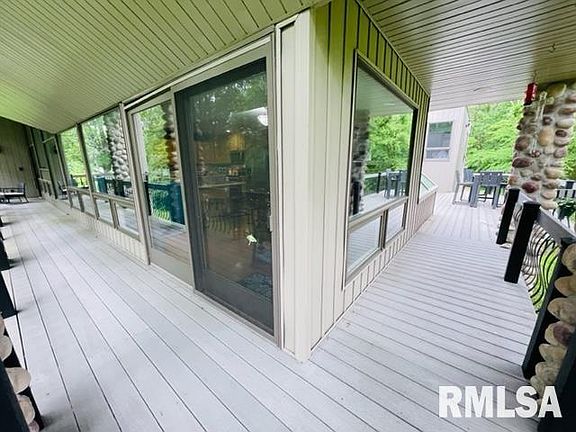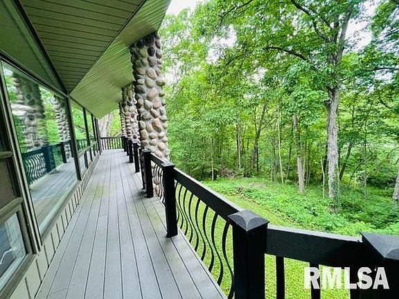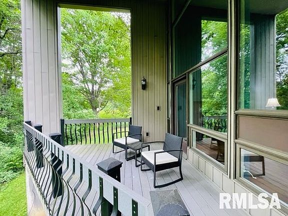 BIG Price Reduction! This is the house you've been waiting for! One of a kind! This modern design home was designed, built, and lived in by the famous Chicago architect W. Bing Coney, who came to Macomb to completely renovate and restore the McDonough County courthouse built in 1872. You will enjoy the safety, peace and quiet this home offers with its private road location tucked into the trees. The large, flat lawn area is perfect for games, parties, or events. Towering views of the year round Spring Creek are visible from most rooms. Watch the deer while you wash your dishes! Many walking trails along the creek that connect to Spring Lake Park. Huge upper walk around composite deck that is a great place to enjoy your morning coffee. Main Level has a living room, informal dining, kitchen and half bath. Many large windows with wooded views. Lower level walkout with 4 bedrooms, 2 baths, each with deck access. Upper level with large family room which could easily be converted into a master suite. Located on 3.4 Acres. Geothermal heating and cooling and bonus 4 car attached garage. Located on 3.4 acres that connect to Spring Lake Park for motorboating, hiking, fishing. Golf course only 2 miles away, Chicago/Kansas City expressway 3 miles, WIU campus 4 miles, and downtown Macomb 6 miles. This home would make a perfect full time residence, a weekend getaway, or an AirB&B rental.