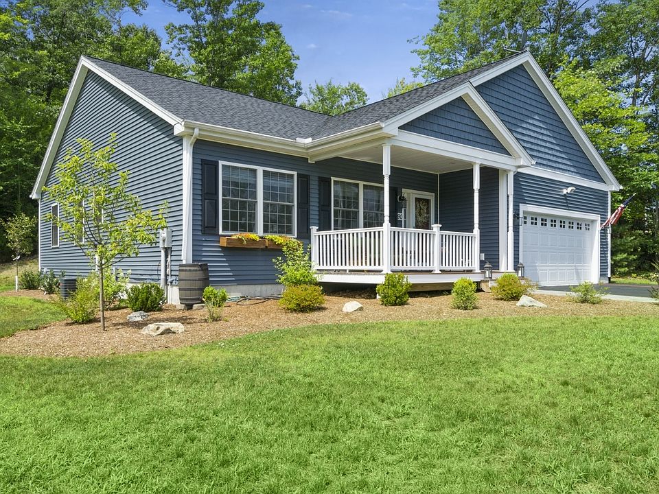 Beautiful 2.5 years young! Welcome your guests with newly landscaped garden and walkway. Open concept living on one floor at its best. You will love the hardwood flooring and cathedral ceilings. Decorative and recessed lighting throughout. Spacious master with full bath and walk in closet. Perfectly placed with peaceful private back yard.