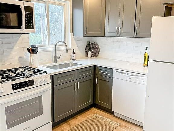 This is your chance to own an affordable maintenance free condo that has everything you could possibly need want! This home has so much class. The wide open layout and high end finishes give you NYC vibes. You will absolutely adore the kitchen in person. Complete with new custom cabinetry, quartz countertops and gorgeous subway back splash. The entire first floor has beautiful laminate flooring. Upstairs you will find two nice size bedrooms Owners bedroom has two closets. The bathroom was fully remodeled to the highest degree including new tub, vanity and tile back surround. The basement is finished for extra living space and you will absolutely love summers with the beautiful deck. It even over looks a nice private setting. The entire building just got an electrical upgrade including new panel box. You are guaranteed to fall in love here!