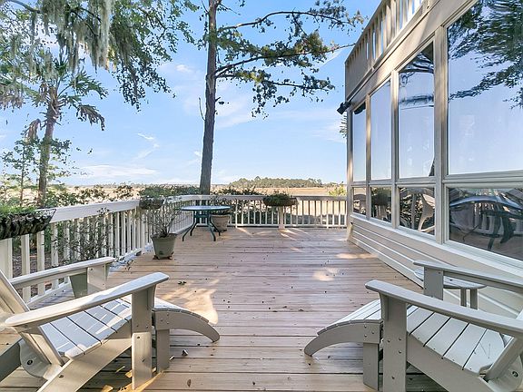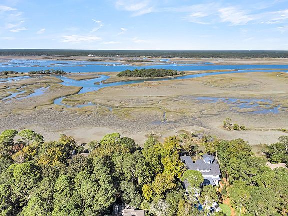 Secluded, private sanctuary with expansive marsh views.Primary suite is on the main floor with kitchen, dining room, living room and glass walled sunroom. Office loft and 2 ensuite guestrooms, both facing the view are on the 2nd floor. An intermediate level features a large suite above the garage. Extensive decks connect the home to it's spectacular natural setting. Stunning sunsets over the Kiawah River.New roof and encapsulated/dehumidified crawlspace October 2024.