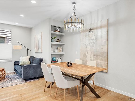 Tucked in the heart of Baker, this townhome is crowned by an impressive rooftop deck with stunning views. Recently built in 2019, the interior boasts contemporary finishes with updated lighting and hardware upgraded from the original builder-grade selections. White oak hardwood flooring flows throughout an open floorplan bathed in natural light from double-pane windows. Enjoy crafting recipes in an eat-in kitchen featuring a center island, sizable pantry, Porcelanosa tile and Krion countertops. Illuminated by an eye-catching chandelier, the dining area seamlessly extends into a living area centered by a modern fireplace. One of three bedrooms, the primary suite features a serene bath with a double vanity. Ample storage throughout includes walk-in closets and an insulated garage. Outdoor relaxation awaits on a rooftop deck boasting picturesque views. Located in the vibrant Baker neighborhood, residents enjoy easy access to trendy amenities and activities along Broadway and Santa Fe.