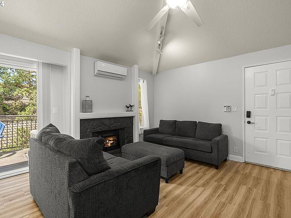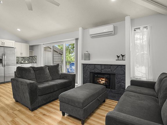 Beautifully updated corner unit with vaulted ceilings in the Kingsgate Park Community! The unit is located on the upper level which means privacy from street-level cars, passersby and no heavy footstep noise coming from above! The versatile LVP flooring throughout creates a cohesive look with a low maintenance, durable and easy care flooring product. Cooking and entertaining are a dream here! The kitchen has been replaced with all new cabinets, counters, appliances and opens to the main living space. The breakfast bar connects the spaces together and provides a place for quick meals, or a spot to keep a busy chef company! The bedroom features French doors and custom shelving to display artwork, books, décor and more. As well as extra storage, washer & dryer, 2 large closets and a full bathroom. Enjoy outdoor living on the nicely sized deck with room for a table, chairs, and umbrella; The perfect spot for sipping your favorite morning beverage, or taking in the evening sunset views! A storage closet on the deck provides a great spot to store seasonal belongings not needed for every day use. EXTRA: In unit washer/dryer included in sale, as well as deeded covered parking spot. MORE: Newer Mini split system provides great heat AND A/C! KINGSGATE PARK COMMUNITY: Has its own private outdoor pool! BONUS: Membership to the amazing Mountain Park Rec Center included in HOA fees. LOCATION: Fantastic Lake Oswego Location near I5, Mt Park, and all that LO has to offer – restaurants, hiking trails, shopping and a coveted school district. Attention investors: No Rental Cap