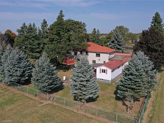 Land in Ancaster: Huge, Solid Custom Built House with In-law Suite + 6000 Square Feet Metal Barn with Hydro and Water. Over Five Acre Manicured Agricultural Land with Large (~3300 Square Feet) European Quality Home Located in the Town of Ancaster, Across the Street from New Residential Development. Easy Access to Hwy 403, Lincoln Alexander Parkway and Highway 6. City Amenities at Fingertips Including Schools, Churches, University, Hospital, Shopping Centres. Incredible Future Development Potential. Hobby Farm, Family Home, In law Suite. Perfect for a large family growing their own organic food and keeping farm animals. Additional Buildings on property: metal barn 100' by 60' in mint condition with water and hydro service and a large chicken coop or kennel. Custom, quality built all brick, 3279 sq. ft. two story home + in-law suite potential with separate entrance and second furnace. Located just West of Fiddler's Green Rd & on CITY WATER and NATURAL GAS HEATING. Solid wood trim, baseboards, plaster ceilings with medallions, hardwoods, oak kitchen cupboards, oak trim including doors, baseboards, circular oak staircase, 8 oak French doors, intercom & security system, patio door from dinette to patio & backyard. High efficiency gas furnace & central air 2015. Master bedroom ensuite with separate shower stall & whirlpool tub, 5 piece main bath with bidet. Exit from second floor level to roof top patio. The property is fully fenced and has 2 barns: one 60 ft x 100ft & the other 32 ft x 20 ft: both barns have hydro & water, zoned A2. Super future development potential or great hobby farm. High Basement with separate entrance, above grade windows and 4 rooms. A2 Zoning allows for many other uses. Easy access to Hwy 403, Lincoln Alexander Parkway (LINC) and Hamilton International Airport. CONTINUE TO SHOW!
