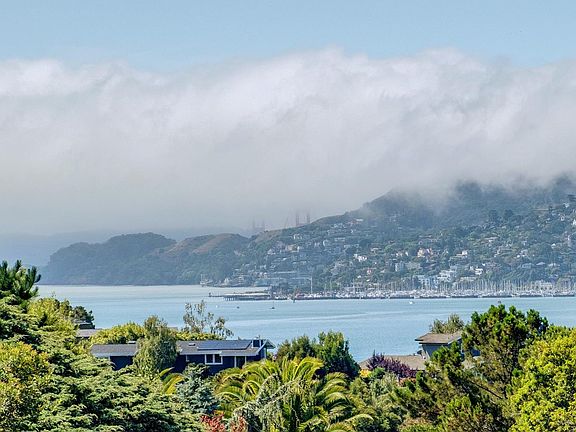 This spacious and secluded 3-bedroom, 2.5-bath residence offers breathtaking views of the Golden Gate Bridge and Bay, in Belvedere Tiburon within the highly acclaimed Reed Union School District. Designed with a reverse floor plan to maximize the scenery, the upper-level features spacious public rooms including a light-filled living room with a brick hearth fireplace and expansive picture windows, a formal dining area, and a large eat-in kitchen equipped with new appliances, generous cabinetry, and direct access to a wraparound deck and large patio overlooking the garden, perfect for entertaining or relaxing outdoors. Downstairs the primary suite includes an ensuite bath, ample closet space, and a private balcony overlooking the terraced garden and serene Bay vistas. Two additional bedrooms, one with sliding glass doors, open directly to a lower deck and manicured garden, offering seamless indoor-outdoor living. A hall bath with double sinks and dedicated laundry area are also located on this level. Additional amenities include a detached two-car garage and extra driveway parking. This home combines comfort, natural light, and amazing views in one of Marin's most desirable neighborhoods close to parks, trails, downtown Tiburon, and highways for easy commuting.