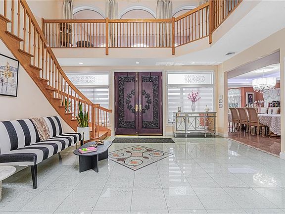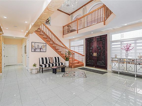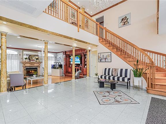 Luxurious 2-Family European Villa in Tottenville 5,690 Sq Ft of Custom Elegance Welcome to a custom-built 5-bedroom European Villa. Nestled on a prestigious, quiet dead-end block in Tottenville, this rare 75x149 lot offers space, elegance, and privacy. As you arrive, you will be greeted by a manicured front lawn with a sprinkler system and a paved veranda leading to double solid mahogany front doors. Enter inside the breathtaking 24-ft high foyer, where a motorized chandelier. Wherever you find tile flooring, enjoy the comfort of radiant heat. The sunken living room features a wood-burning fireplace, custom built-in entertainment center, and surround sound. A formal dining room offers space for elegant dinners, while an additional family room provides even more versatility. The custom eat-in kitchen is a chef's dream, with a butler's pantry, Thermador double wall oven, Subzero refrigerator, double counter-mount sinks, granite countertops, and a large island for casual seating. French doors lead to a stunning backyard oasis, with Covered porches, A custom-built pizza oven, Outdoor kitchen area, A heated saltwater in-ground pool with a waterfall. On the second floor, the primary suite is a private retreat, offering a 4-piece bath and a private balcony, and a walk-in closet. The second bedroom also features a private balcony, while two additional large bedrooms complete this level. Hardwood floors throughout, the bedrooms on this floor. A separate staircase leads to a full finished attic, perfect for family or playroom. The full basement has an outdoor entrance, 1-bedroom apartment with kitchen, living room, full bath, Washer/dryer hookups. Solar panels for energy efficiency, 4 security cameras for added peace of mind 5-zone heating and air conditioning. This one-of-a-kind luxury home combines timeless elegance with modern convenience.