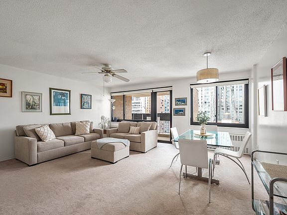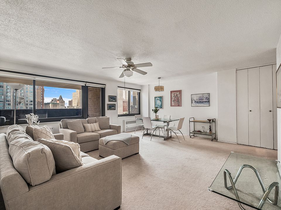 The apartment has western views throughout, as well as partial East River views. At approximately 950 square feet, there is an abundance of storage space and a large living space.