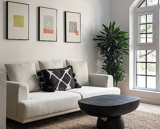 Behind its timeless red-brick facade, interiors balance warmth and modern elegance with herringbone-patterned white oak floors, custom walnut cabinetry, polished quartz countertops, and serene travertine-tiled bathrooms.