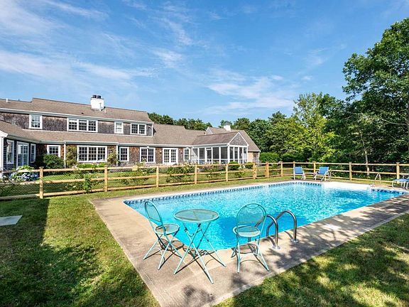 VINEYARD STYLE LIVING NEAR SOUTH BEACH. Privately sited within a mile of South Beach, this classic Vineyard home is the epitome of Vineyard style living at is finest. Perfectly designed for indoor-outdoor living and entertaining, there are spacious living areas with French doors that open onto a bluestone terrace and screened porch, surrounded by beautiful gardens, lawn and a pool. The home is loaded with charm and features two handsome fireplaces, a new cook's kitchen, built-in window seats and bookshelves. Enjoy a morning walk or bike ride to South Beach. Savor summer afternoons swimming and reading by the pool. Gather family or friends for an festive alfresco meal on the patio or screened porch. This is a perfect opportunity to create your perfect Vineyard lifestyle in Katama!