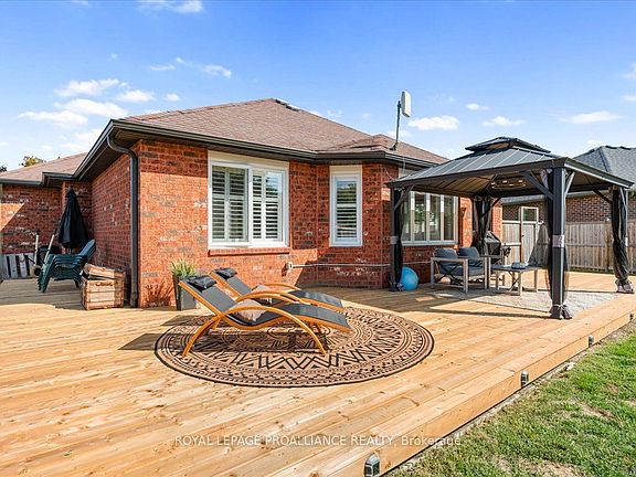 SHOW CASE! Solid 2+1 bedroom brick bungalow in exclusive Campbellford neighbourhood. Quiet Cul-de-Sac with great country side views and spectacular sunsets. Bright open concept, newer custom kitchen with Quartz counters. Bamboo flooring on main level. Patio door off dining area to spacious new deck and private fenced grounds. 3 full new baths including 3 piece en-suite. Fully developed lower level with 3rd bedroom adjoining 3 piece bath. Open rec room area and workshop/cold room. Inviting front porch to enjoy the peaceful neighbourhood. Immediate possession available.