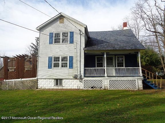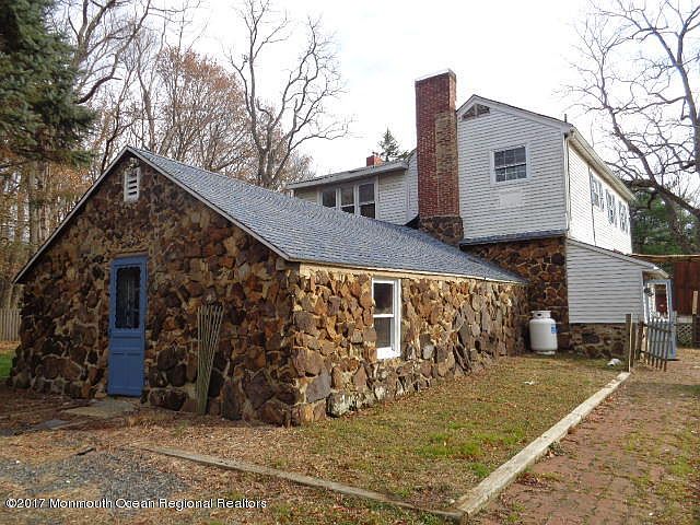 Take a look at this charming home built in around 1860. Large eat in kitchen and family room with fireplace. Primarily wood floors throughout main level. Large outbuildings afford many uses, great for contractor or hobbyist. Located in a private like area of Freehold Township.