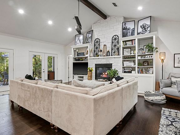 This remarkable waterfront residence is situated on Lake Elizabeth within the esteemed Lake Cypress Springs Community of Kings Country spans an impressive 3.565 total acres and boasts 13 adjacent lots. The custom single-story home features three bedrooms, two bathrooms, and modern updates like fresh paint, wood flooring, and granite countertops throughout the over 1700 square feet of living space. The open concept great room, dining area, and kitchen offer breathtaking tree-lined views and create an ideal space for entertaining that flows seamlessly out onto the oversized deck. Enjoy this property's tranquil and secluded setting enhanced by the beautiful landscaping, complete with an irrigation system and magnificent trees. Residents of Kings Country have direct access to Lake Cypress Springs and a range of amenities, including five interior lakes, parks, a fishing pier, boat ramp, tennis courts, a playground, and a clubhouse. Ready to be your next full time home or weekend getaway.