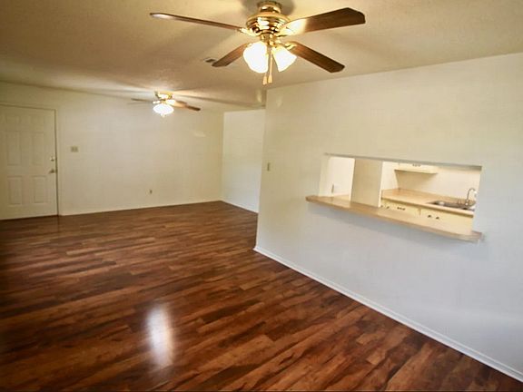 2 bedroom, 1 bath ground floor corner apartment with lots of windows providing plenty of natural light. Concrete floor above. Small, quiet apartment complex in a residential neighborhood. Laminate floors in living area, tile in kitchen and bathroom and carpet in kitchen. Appliances include side by side refrigerator with in door ice/water dispenser, stove/oven, microwave and dishwasher. Serve-through counter from kitchen to dining area. Ceiling fans in the living room, dining area, and both bedrooms. Large walk in closet with two doors in master. Convenient to I-10 for commuters. Parking and access in front and rear of the apartment. Garbage included in rent. Tenant to provide electricity and water. Washer/dryer hookups in apartment. Year lease and damage deposit required. This is a nonsmoking apartment and no pets allowed. Will hold for 2 weeks with full damage deposit.