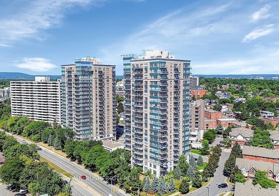 Welcome to this beautifully maintained 2-bedroom, 2-bathroom suite in the highly sought-after La Tiffani II. Floor-to-ceiling windows fill the space with natural light and showcase lovely eastern views from nearly every room. The open-concept living and dining areas flow seamlessly into the modern kitchen, featuring granite countertops, stainless steel appliances, and ample cabinet space. Hardwood and ceramic tile flooring run throughout, complemented by upgraded lighting for a bright, stylish feel. Both bathrooms feature granite finishes, with the primary ensuite including a relaxing spa tub. The spacious primary bedroom also offers a walk-in closet and private balcony access. Additional features include a second large bedroom, in-unit laundry, underground parking, and a storage locker. Residents enjoy secure entry and exceptional amenities, including an indoor pool, fitness centre, and party room. All just steps from Beechwood Village shops, restaurants, parks, and transit, and minutes to downtown Ottawa. Furnishings negotiable. 24 hours irrevocable on all offers