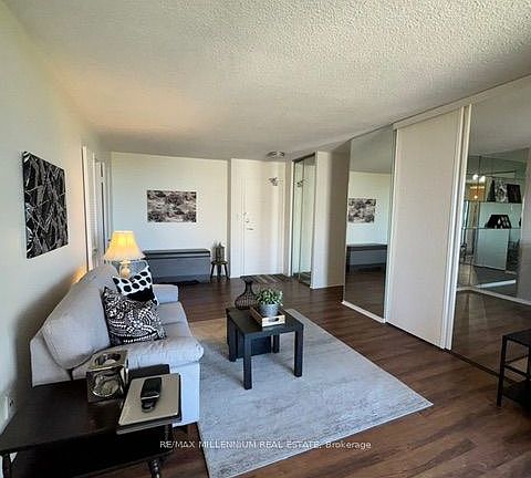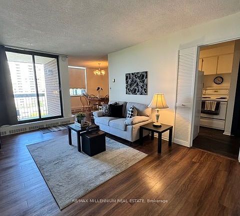 Welcome home to a bright and spacious 2-bedroom + den condo with 2bathrooms and parking. Enjoy 1,150 sq ft of functional space. Condo has a full-sized kitchen, an open-concept living and dining area perfect for entertaining, ensuite laundry, ensuite storage room and a large den ideal for a home office or guest room. The oversized primary bedroom features a walk-in closet and ensuite washroom. Well-managed building with amenities including a gym, pool, party room, tennis and visitor parking. Close to TTC, GO, UofT, Centennial College, grocery stores, parks and schools. Furniture is included, move in and enjoy!