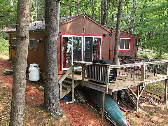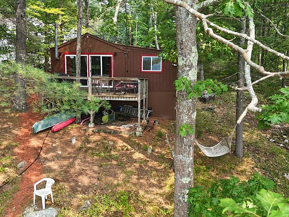 Welcome To Camp on Pleasant Pond! This two Bedroom charmer offers an amazing deck overlooking the water, unbelievable westerly sunset views, large dock for boating or swimming and perfect deep water frontage. Located literally 2 minutes from I-295 and close to many restaurants theaters live music and hiking~ this lakeside escape offers peace and serenity with rare ease of access. Surrounded by Miles of Unbelievable Fishing, with a boat lanch a few streets down. Camp has a new roof and newer septic. Some updating is needed but come listen to the loons~ and experience the dream of an affordable Maine waterfront camp