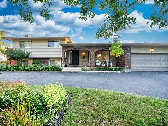 Welcome to this stunning, meticulously maintained home, ideally located in one of Niagara-on-the-Lakes most sought-after neighborhoods. Set among mature landscaping and situated on a large lot, this property offers exceptional privacy both front and back.Flooded with natural light from an abundance of windows, this carpet-free home features a spectacular main-level layout. Enjoy a spacious living room with a cozy fireplace, a formal dining area, and an open-concept kitchen complete with stainless steel appliances, quartz countertops, and ample cabinetry. A bright and inviting family room provides plenty of space for gatherings and entertaining.Upstairs, youll find two generously sized bedrooms, each with its own private 4-piece ensuite bathroom. Just a few steps down, two additional beautifully appointed bedrooms share a 3-piece bathroom.The fully finished lower level offers even more living space, including a fifth bedroom, a laundry room, and a large recreation roomperfect for a home gym, media room, or play area.An extra-long circular driveway provides parking for up to 8 vehicles, in addition to a double attached garage.This unique 4-level side-split home is within walking distance of The Commons, the Heritage Trail, Niagara Parkway, several renowned wineries, and the charming shops, restaurants, and theatre of Old Town.Whether you're looking for a peaceful retreat, a retirement haven, or an income-generating property, this home is full of opportunity.