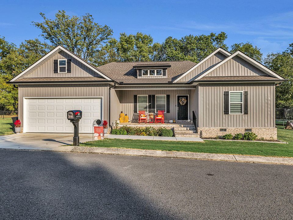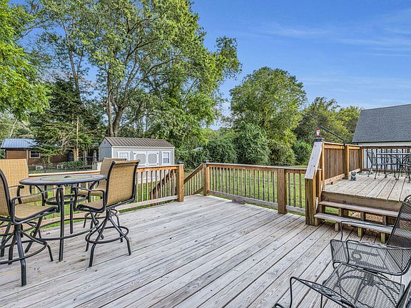 Charming Picture Perfect home features 3 bedrooms and 2 full baths. Open floor plan with spacious living room, kitchen and dining area. Cozy fireplace brings warmth to the living area. Kitchen has white cabinets with Quartz counter tops, with a work island . Lots of crown moldings, and trey ceilings. Primary bedroom is spacious with large bathroom with a tile walk in shower. Large walk in closet. Full bath is spacious with natural lighting from the transit window. Additional bedrooms are very spacious with good closet space. There is a covered back porch with a large attached deck to enjoy grilling or entertaining. Great fenced in back yard with fire pit to sit around in the evenings. Nice size storage building will remain with the home.