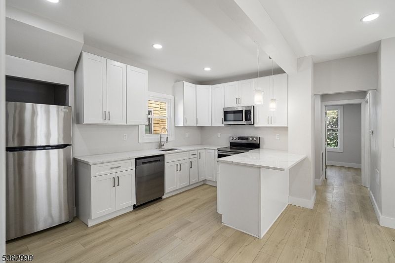 Experience modern living redefined in this beautifully reimagined two-family residence. With 5 expansive bedrooms and 4 luxurious bathrooms including two private master suites, this home was crafted for both elegance and functionality. The duplex-style upper floors present an open-concept flow enhanced by contemporary finishes, recessed lighting, central air, and chef-inspired kitchens with stainless steel appliances. Lifestyle amenities include in-unit laundry, separate utilities, a walk-out basement with room for expansion, parking for 4+ cars, and an oversized backyard oasis. Just minutes to trains, buses, fine dining, shopping, and highways, with seamless access to New York City. A rare opportunity to own a turnkey, income-generating property in a vibrant location.