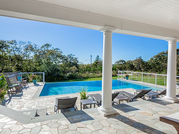 Rental Registration #: 24-86 Spectacular 4 bedroom, 4 bath water view rental. Hot tub, gunite pool. Exquisite and unique offering with direct access to Napeague Harbor Bay, the famed dunes, and graciously surrounded on all sides by over 600+ acres of State Parkland and 1300 Acres of Nature Preserve, this incredible new home offers the most beautiful sunsets captured on the East End. Artfully sited on the acre property this 4,500 sq. ft. custom Nantucket inspired home offers top of the line amenities throughout, with comfort, style and summer living at its finest. The entry level offers three ensuite guest bedrooms, and a separate wing for either guest or media/office room enjoyment. Each of these rooms open to over 2,000 sq. ft. of slated covered patio, and decking overlooking the heated gunite infinity edge pool. Arbor laced stone outdoor shower and enclosed 4 Season Spa with outdoor stereo system. The Main living area has dynamic cathedral ceilings with antique hewned beams; state of the art chef's kitchen with enormous center island counter seating for six, all top of the line Wolf appliances, including counter cook top, convection oven, warming drawer and a Fisher Paykel dual drawer dishwasher. An all season sun room sits off the living room, centered by a stone fireplace, flat screen TV and sliders leading out to the second level decking, outdoor grilling/kitchen area and screened sunset gazebo. The upper Master suite has its own laundry room, dressing room, radiant heated floors, and master bath. Additional features include a 2 car garage, CAC, and rolling lawns. For the discerning summer guest this magnificent offering is a short distance to ocean beach and only a few minutes drive to both Montauk and Amagansett villages. Capture the magic of sunny fall days and cool sleeping nights..