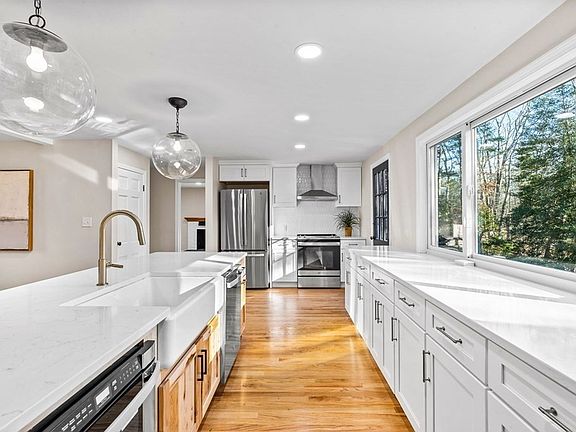 COMPLETELY RENOVATED 5-Bedroom Colonial tucked privately in the highly desirable Old Forge neighborhood. A custom hickory island anchors the breathtaking, modern kitchen complete with oversized farmer’s sink, crisp white cabinetry, stainless appliances, and an expansive picture window overlooking the secluded back yard. The great room with sweeping cathedral ceilings features a spectacular floor-to-ceiling, shiplapped stone fireplace and natural woodwork. A peaceful screened-in porch, dining room, and additional front-to-back living room offer plenty of space to spread out on the main floor. A mudroom space connects to large, private guest suite lends itself to space for the IN-LAWS, au pair, or home office. Upstairs you will find four more generous bedrooms with gleaming hardwood floors and two modern full baths. A large basement and two car garage provide plenty of space for storage and future expansion. Convenient location w/easy access to 3A & commuter rail. BRAND NEW ROOF!!!