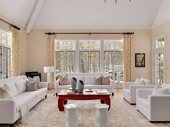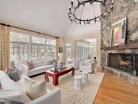 Pristine and recently refreshed, this stunning country residence privately situated behind a gated entry offers understated elegance and a gracious comfortable ambience. Beautifully landscaped grounds, a showcase pool and pool house create a special haven of tranquility and natural beauty. Walls of glass frame the main living areas which offer perfectly proportioned interiors detailed with a myriad of unique touches that set the house apart. Stone fireplaces, lustrous woods floors, luxurious baths, a chef's kitchen and wonderful master suite are among the special features. A two-story pool house features living and dining areas, game rooms, a full bath, gym and a two car garage. A detached garage with storage above offers space for an additional two cars. Full house generator.