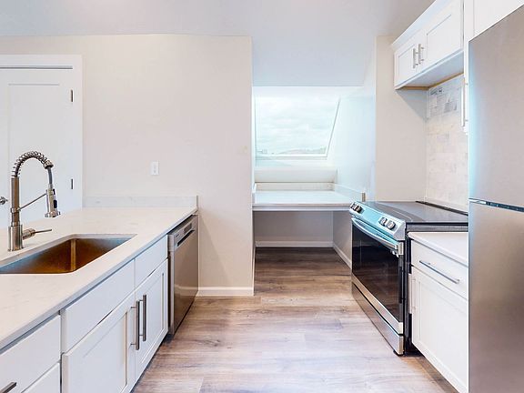 The large windows in the living area allow natural light to flood the space, creating a warm and inviting atmosphere that you'll love coming home to, while offering a great view of the New Haven skyline.