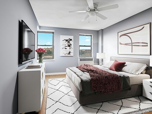 Brand new granite countertops and just installed new dishwasher with goose neck sink. The large bedroom accommodates comfortably a king size bed with furniture. Two windows, one of which is a corner with sweeping views & double floor to ceiling closets. The windowed large Bathroom has new vanity and medicine cabinet with freshly reglazed bathtub.