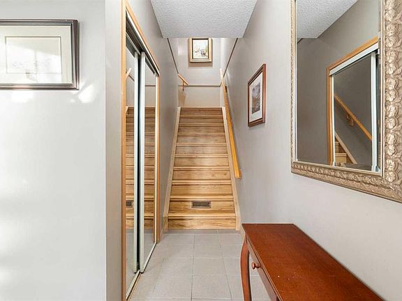 This bright and spacious end-unit townhome offers exceptional value in the desirable community of Patterson. Recent updates include newly replaced roof, windows, a new water tank, and fresh interior paint throughout, adding comfort, efficiency, and a clean, move-in-ready feel. The tandem double garage provides plenty of room for two vehicles along with built-in shelving and extra storage in the furnace room. Inside, you’ll be impressed by the expansive living and dining areas, perfect for both everyday living and entertaining. The living room features a cozy fireplace with mantle and custom built-ins and opens onto a sunny front balcony. The generous L-shaped kitchen is filled with natural light and includes a breakfast nook with direct access to the private rear deck, which overlooks a peaceful, park-like green space — an ideal spot to unwind. Upstairs features two well sized bedrooms with a charming den surrounded by windows, making it an excellent home office or reading room. The spacious 4-piece bathroom connects directly to the primary bedroom while also offering hallway access. Convenient built-in cabinetry in the upper hallway provides additional storage. Located in sought after Patterson, this home offers quick access to downtown, major routes, C-Train stations, shopping, and everyday amenities. A well maintained, beautifully updated home in a prime location — this one is a must see.
