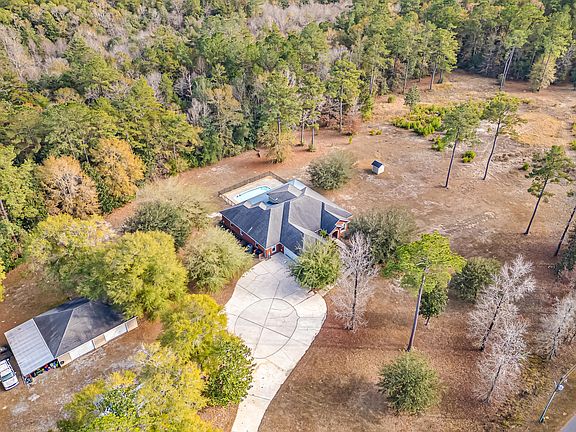 Simply no detail left undone! This custom built home offers exceptional craftsmanship and thoughtful design. Step inside to a grand entryway leading to a formal dining room and a dedicated office. The kitchen features custom maple cabinetry, granite countertops, a breakfast bar, and a walk-in pantry, overlooking the family room, Florida room, and sparkling saltwater pool. The split floor plan places three bedrooms on one side. With a MIL suite and a luxurious owner's suite on the other side of the home. Upstairs, a versatile fifth bedroom offers endless possibilities. Enjoy the large driveway, 2 car attached garage and free standing 2 car garage with attached car port. Bring your horses or start your own mini farm, there is plenty of space for barns, riding trails and more. Enjoy the peace and privacy of no neighbors, nestled on 16+ private acres, this home provides the perfect blend of country living and convenience, just 5 minutes from DeFuniak Springs. The best of both worlds. space, style, and serenity.
