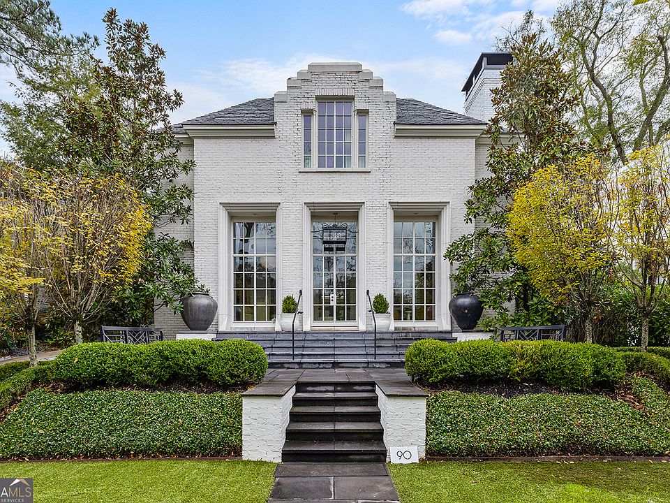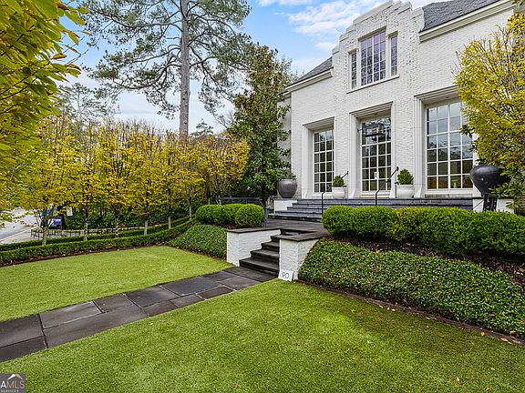 Designed by Bobby McAlpine, this all-brick Ansley Park residence offers timeless architecture, exceptional natural light, and an ideal layout for modern living. A landscaped front courtyard welcomes you into sun-filled living and dining spaces that connect easily to the kitchen, butler's pantry, and fireside family room. Steel windows and doors throughout frame views of the surrounding greenery and bring light into every room. The upper level features a spacious primary suite with a marble bath, along with three additional ensuite bedrooms. A finished lower level provides flexible living space, a full bath, and generous storage. The private backyard includes turf, a covered grilling porch, and a walk-out design perfect for everyday use and entertaining. From its elevated perch, the home enjoys beautiful views across the Ansley Golf Course and sits just one block from the Ansley Golf Club-a rare combination in this coveted neighborhood. A detached two-car garage and additional off-street parking complete this exceptional offering.