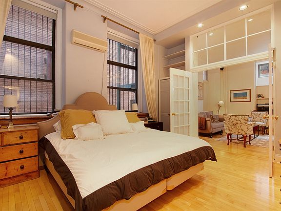 Rare opportuniy to rent an Authentic Soho loft featuring soaring 12' high ceilings, maple hardwood floors, a master bedroom with en-suite full marble master-bath, large walk-thru closet equipped with great california closet built-ins, full second guest bathroom + Miele Washer/Dryer, interior 2nd bedroom with an additional alcove space which can be used as dining, den or media space. Open kitchen, 3 separate zones central A/C. This Boutique condo Loft Building has a new keyed elevator to each floor and intercom. Pets ok. Email Nick Gavin for a private showing.