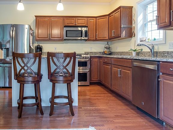 Enormous End Unit Townhouse, built in 2014, in sought after Ava Estates, located in the back of the condo complex with secluded patio facing the woods. It boasts upgraded kitchen cabinets with a large kitchen island, granite counter tops, and Energy Star Stainless Steel Appliances. The spacious open floor plan with gleaming hardwood floors, is great for entertaining with a deck, half bath, dining area, living room with a gas fireplace. Second floor has a master with an on-suite bath and walk-in closet, a second bedroom, full bath and a bonus room over the garage for office, den or guest room. There is also a large unfinished attic for extra storage. The lower level has a large finished walk-out basement to a grass common area and patio. With the additional bonus room on second floor and the finished walkout basement, this home could easily accommodate a large or extended family. Two car attached garage on main living level.
