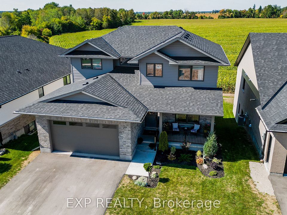 Welcome to 90 Rea Drive, a show stopping residence by Keating Construction that truly raises the bar. This 4 bedroom, 4 bathroom two storey home delivers over 2,800 sq. ft. of exquisitely finished living space designed for comfort, connection, and style.The heart of the home is a luxury inspired kitchen featuring quartz countertops, a generous island, custom cabinetry, and premium stainless steel appliances . Perfectly positioned for both everyday living and effortless entertaining. The bright, open layout flows into expansive living and dining areas where oversized windows frame sweeping views of the farmland beyond. A stunning gas fireplace is the focal point for family gatherings. Enjoy the covered raised deck overlooking the farm field below for tranquil morning coffee or an evening glass of wine, no matter the weather. A thoughtfully designed mudroom with built-in storage, pantry space, and direct access to the double garage adds a layer of practical luxury, while a bonus main floor office/bedroom offers flexible space tucked away from the main living areas. Upstairs the custom layout is made for family living with no wasted space. The serene primary suite offers a walk in closet and a spa style ensuite with a double vanity and an oversized walk in shower. Two additional bedrooms, a full bath, and a convenient laundry room complete this functional and well planned level. The finished walkout basement extends the living space with a large rec room, featuring 9; ceilings, a fourth bedroom/flex space, another full bath, and direct access to the backyards peaceful countryside setting. With its refined finishes, thoughtful design, and exceptional build quality, 90 Rea Drive is more than just a home - its where style meets substance.