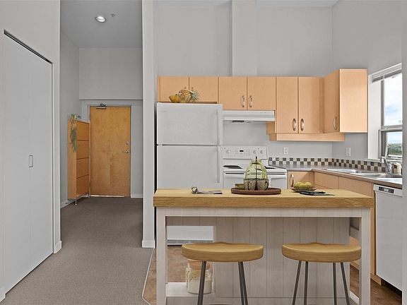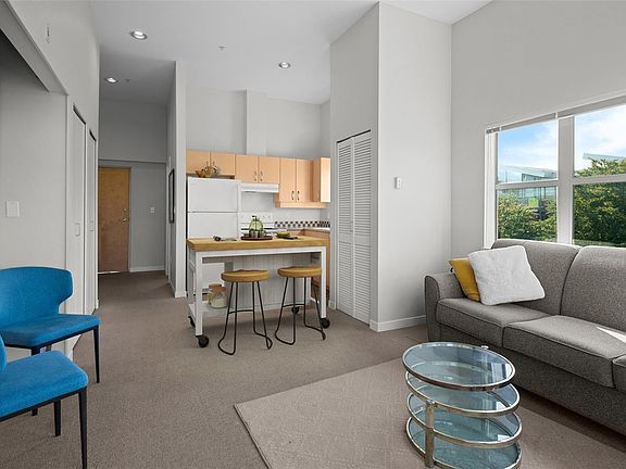 Top-Floor Corner Unit at Regatta Landing! This bright and airy home features vaulted ceilings and expansive windows, filling the open-concept layout with natural light. With only one shared wall, you'll enjoy added privacy and tranquility. Highlights include in-suite laundry, a built-in Murphy bed, a dedicated parking stall, and a separate storage locker. The well-managed building is organized around a unique open-air central courtyard, has no age limit, and allows pets of any size. Ideally situated at the edge of the Railyards, outdoor enthusiasts will love the direct access to the Galloping Goose Trail and the nearby dock for swimming or paddleboarding. All this, just moments from Downtown Victoria—close enough to enjoy the best amenities yet tucked away from the noise. This one checks all the boxes!