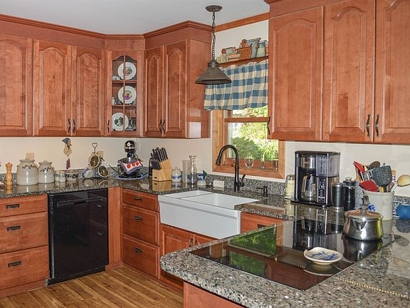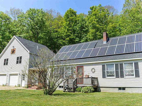 This charming home has it all! The main house – set far back from the road - welcomes you in from the moment you enter through a covered porch area into a spacious family room/mud room. Hardwood floors are carried throughout the first floor – where you’ll find a dining room, living room with a Harman pellet stove and an option for a first floor bedroom that currently houses the laundry. Upstairs is where you will find two additional bedrooms – one of which already has rough plumbing available to tie into if a second bathroom was needed, with a future window framed in as well. A gorgeous & efficient cherry kitchen with granite counters and a farmer’s sink is a main spotlight of this home, which opens to the back patio space that has delightful garden plantings to surround you. The solar panels are owned and supply electricity for the main house and the garage, keeping your monthly electric bill below $14! Above the garage is the 2-bedroom, in-law apartment. This space has a ¾ bathroom with its own washer and dryer. The heat, electric and hot water is separate from the house, making the potential for rental income with separate utilities appealing. There is so much to love about this home. Subject to suitable housing - seller's new house expected to be completed by the end of August. Showings to begin Sunday, 6/04 BY APPOINTMENT from 1:00-4:00 pm.