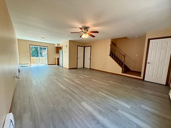Welcome home to this beautifully updated rental in a highly desirable location, just steps from scenic walking trails. This spacious and well-maintained home offers comfort, style, and convenience throughout. The main floor features a bright, open-concept layout with a large living room, dining area, and kitchen - perfect for entertaining or relaxing. Sliding glass doors leads to a private deck, ideal for outdoor dining or enjoying your morning coffee. A half bathroom completes the main level. Upstairs, you'll find two oversized bedrooms with generous closet space, plus a fully renovated full bathroom with modern finishes. The walk-out lower level is fully finished, offering additional flexible living space - perfect for a home office, gym, or family room - and includes a washer and dryer for added convenience. Enjoy the outdoors in the fully fenced yard, and take advantage of off-street parking for hassle-free living. Additional features include: Fresh paint throughout, Brand-new flooring, Private deck and fenced-in yard, Off-street parking, In-unit washer & dryer (lower level). Strong credit and background check required. Renter is responsible for all utilities including water. Credit check and background check for all adults 18 and older is required.