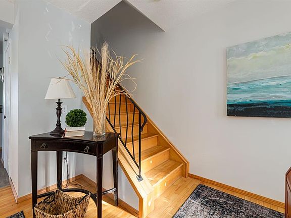 Welcome to this charming 2-storey half duplex located on a quiet tree-lined cul-de-sac in the heart of Acadia. Perfectly positioned beside a green pathway and backing onto a school yard and park setting, this property combines privacy, convenience, and family-friendly living. The pie-shaped lot offers an expansive backyard with alley access, a detached single-car garage, and RV parking. A front chain-link fence adds security while still showcasing curb appeal. Inside, the south-facing living room fills the main level with natural light. The updated kitchen features glossy cabinetry, an undermount sink, and space for a full dining table, perfect for family meals and entertaining. From here, sliding patio doors open to a private backyard patio. An additional back entrance leads to a mudroom with a half bathroom and convenient basement access. The upper floor offers three spacious bedrooms and a full 4-piece bathroom plus a large linen closet. Downstairs, the fully finished basement includes a family room, an additional bedroom, and another 4-piece bath—plus rough-ins from a previous kitchen setup, providing suite potential (subject to approval and permitting by the city/municipality) 4 bedrooms total (3 up, 1 down), 2.5 baths, and no condo fees, this home offers incredible value in one of Calgary’s most sought-after neighbourhoods. Schools, parks, shopping, and transit are all within easy reach, making this the ideal opportunity for families, investors, or first-time buyers alike.