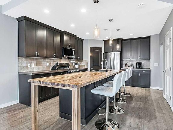 Welcome to your family-sized home in New Brighton — over 1800 SF — set on a MASSIVE, OVERSIZED PIE-LOT BACKING DIRECTLY ONTO NEW BRIGHTON ATHLETIC PARK. This is the kind of yard that truly changes your lifestyle. With a HUGE THREE-TIER DECK and a sunny, open stretch of green space, there’s room to relax, host, BBQ, garden, play, and unwind — all with NO NEIGHBOURS BEHIND YOU and unobstructed park views as your everyday backdrop. The backyard is designed for living: the three-tier deck creates natural outdoor “zones” for lounging, dining, and entertaining, while the expansive lawn offers endless space for kids, pets, gardens, or a future play structure. Morning coffee. Summer BBQs. Evening fires. Kids running free. This is the backyard everyone wishes they had. Inside, the main level impresses with 9’ ceilings, luxury vinyl flooring, and a bright, sun-filled open-concept layout with large windows overlooking the backyard. The chef-inspired kitchen stands as the heart of the home — featuring a gas range, custom Acacia wood island with bar seating, full-height cabinetry with crown molding, corner pantry, dedicated coffee bar, and custom lighting. Warm, welcoming, and filled with natural light — this is a space designed for both everyday living and effortless entertaining. The dining area easily accommodates a large family table, with sunlight pouring in to create a warm, inviting atmosphere. From here, the layout flows seamlessly into the spacious family room, complete with a gas fireplace, tile surround, and custom built-ins — a perfect space to gather and relax. Upstairs, you'll find three generous bedrooms plus a versatile bonus/flex room — ideal as a playroom, home office, or media lounge. The king-sized primary suite delivers a comfortable retreat, featuring a designer feature wall, walk-in closet, and a private 3-piece ensuite. The partially developed basement provides a huge head start — already featuring a 4th bedroom, 3rd full bathroom, and a large rec/family room layout that’s just waiting for final finishes. Whether you’re dreaming of a home theatre, gym, games room, or cozy lounge, the heavy lifting is already done — about 90% complete and ready for you to finish the way you want. CALL TODAY BEFORE ITS GONE. Seller Says Buy This House, And We'll Buy Yours*. Homes For Heroes Cashback Program*. (*Terms and Conditions Apply).