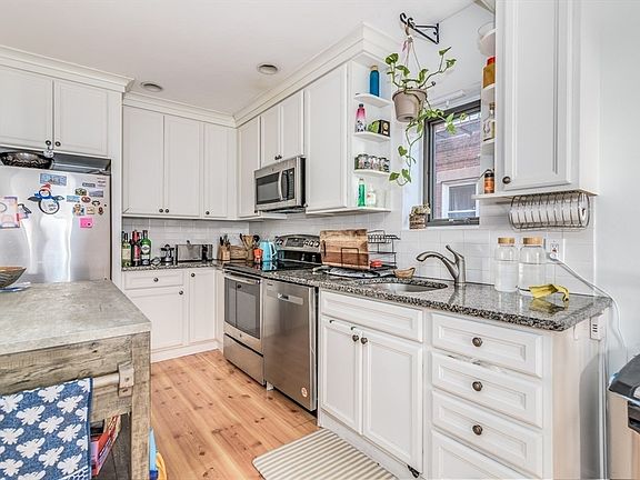 Welcome home to this sun-splashed corner 2-bedroom condo on one of the North End's most desirable streets. This bright move-in ready 795 square foot home features a welcoming open layout, renovated kitchen with granite counters and stainless-steel appliances, central heat & AC, gorgeous hardwood flooring, newer windows, laundry in-unit, and a luxurious spa-like tiled bathroom. Both bedrooms are spacious with good closet space....a rarity in the area at this price point. Well maintained professionally managed building includes additional storage in the basement. 90 Salem Street features a perfect 100 walk and transit score from walkscore with easy access to all that Boston's historic North End has to offer.