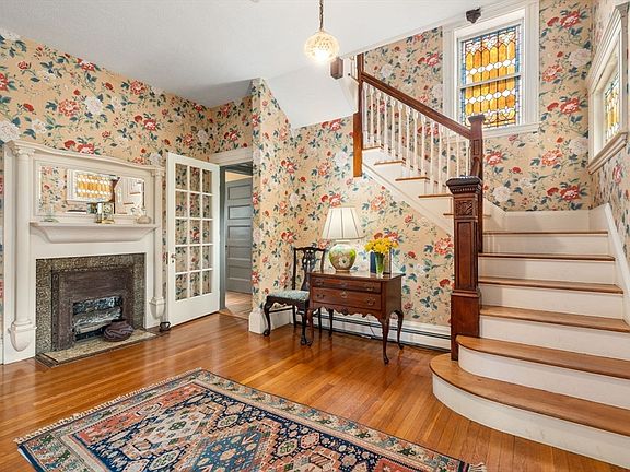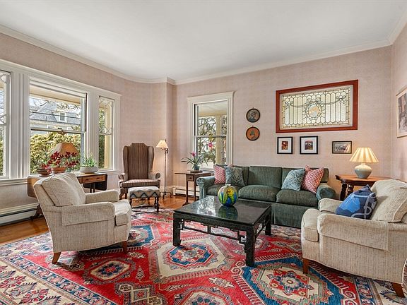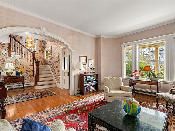 The Bartlett House, built in 1896 & lovingly maintained by the same family for almost 60 years, is ready for its next chapter. You are welcomed into the foyer by many of the exquisite period details, including a decorative fireplace & mantle, stained glass window & archway leading into the large living room. Pocket doors open to a beautiful dining room w/ access to a large wrap around porch, built-in china closet & additional decorative fireplace. An updated, eat-in kitchen overlooking the expansive yard & powder room complete this level. The second floor offers a gracious landing, three ample sized bedrooms, full bath and access to a deck. The third floor provides two additional bedrooms & sitting room. Soaring ceilings throughout. A large wrap around porch, portico & three story barn are only a few of the desirable exterior features of this home. Ideally located w/ easy access to all schools, public transportation, shops & restaurants of Belmont Center & all neighborhood amenities